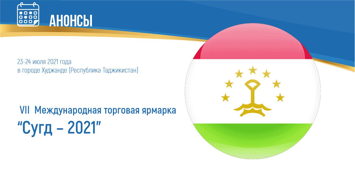 Союз «Калининградская торгово-промышленная палата» информирует, что 23-24 июля 2021 года в городе Худжанде (Республика Таджикистан) пройдёт VII Международная торговая ярмарка “Сугд – 2021”