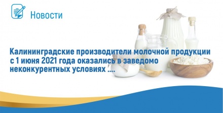 Калининградские производители молочной продукции с 1 июня 2021 года оказались в заведомо неконкурентных условиях по сравнению с предприятиями, расположенными на остальной территории России